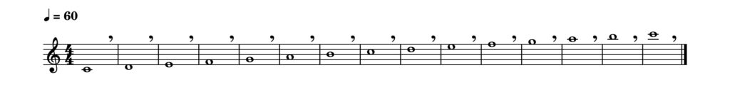 Si vous êtes débutant, vous pouvez travailler cette gamme du Do médium au Do aigu. Les flûtistes qui maîtrisent déjà le registre grave, notamment le Do grave, peuvent l’étendre sur deux octaves, du Do grave au Do aigu, ce qui enrichit considérablement le travail technique.