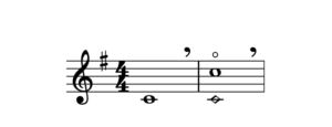 Souvent, la note est indiquée avec une tête en losange, et un petit rond au-dessus.